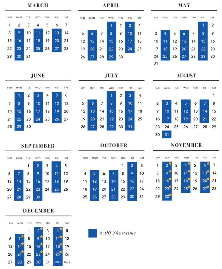 Ticket pick-up is located in main ticket office. Must have a hard printed ticket (no e-tickets or print-at-home). Dinner is served during the pre-show. Doors open 15 minutes before showtime. Check out our FAQ page for more questions. Menu subject to change.