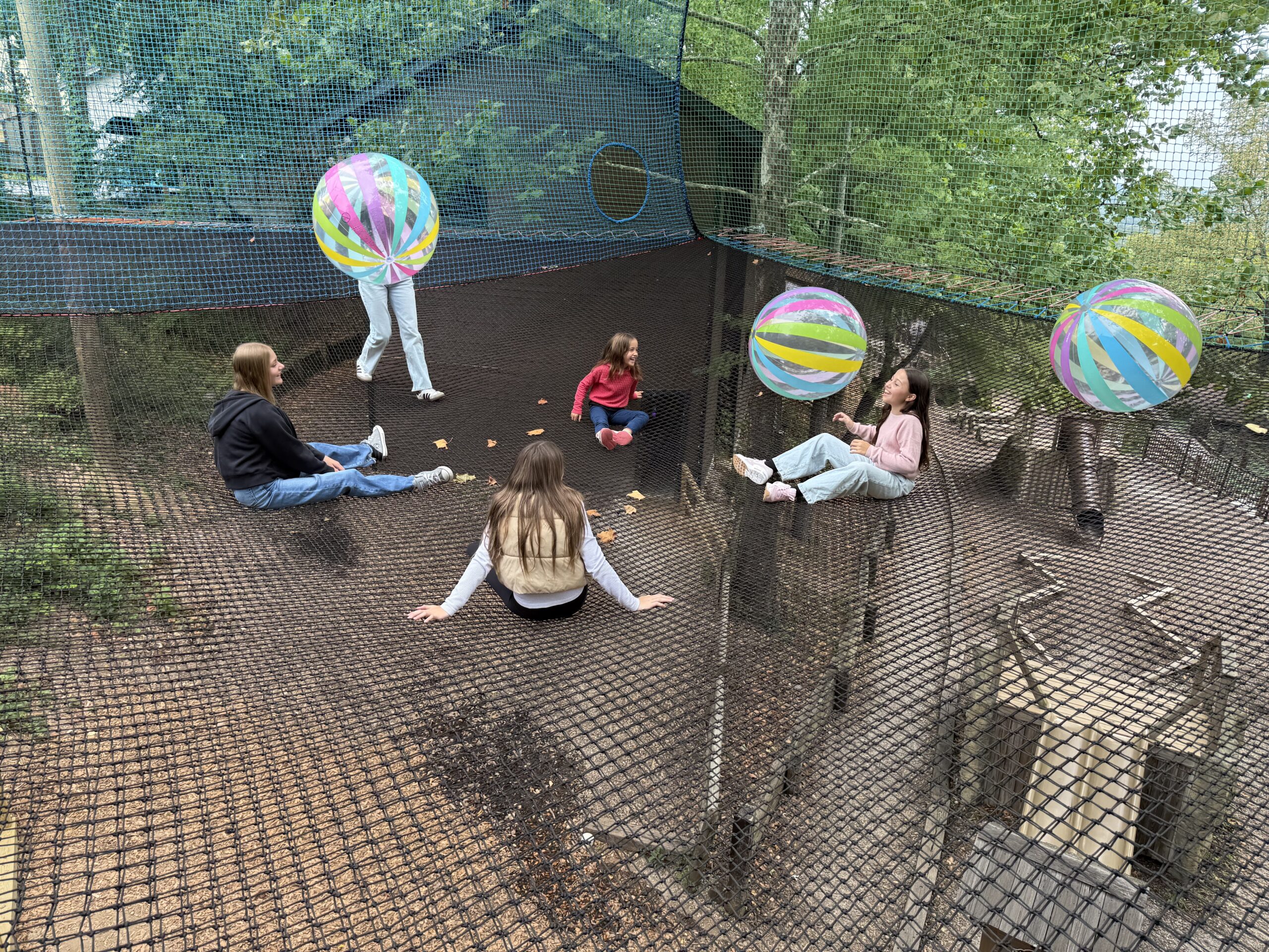 Climb, crawl, and bounce your way through the newest addition to Shepherd’s Park, a suspended elastic rope dome with a slide exit that’s as fun as the journey. In warmer months, inflatable toys and balls keep the play going. Net-Ventures included in general admission!