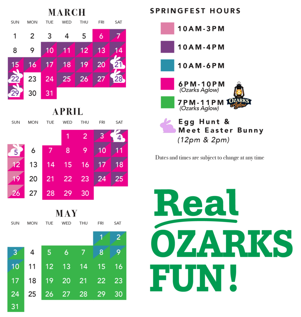 Visit Shepherd’s Adventure Park for a unique Springtime experience during Spring weekends. Our Springfest is packed with a variety of fun family things to do in Branson, MO. Join our easter egg hunt, meet the Easter Bunny (appearances during the Egg Hunt), pet baby bunnies, Spring-themed shakes, and much more park activities! It’s a full spring Branson experience. Have a hoppin’ good time!